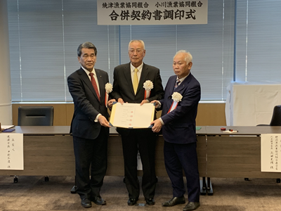 令和8年1月22日、焼津市役所において当組合と焼津漁業協同組合との合併契約書調印式を執り行いました。